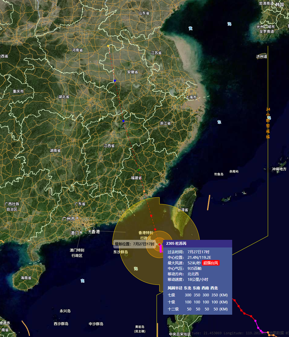 【“杜苏芮”再次升级为超强台风 中国气象局启动台风一级响应】财联社7月27日电,中国气象局启动台风一级应急响应。7月27日17时,台风“杜苏芮”的中心距离福建省厦门市南偏东方向约360公里,中心附近最大风力16级(52米/秒,超强台风级)。预计,“杜苏芮”将以每小时15-20公里的速度向北偏西方向移动,将于28日早晨到上午在福建东山到莆田一带沿海登陆,登陆时强度为强台风级或超强台风级(48-55米/秒,15-16级)。