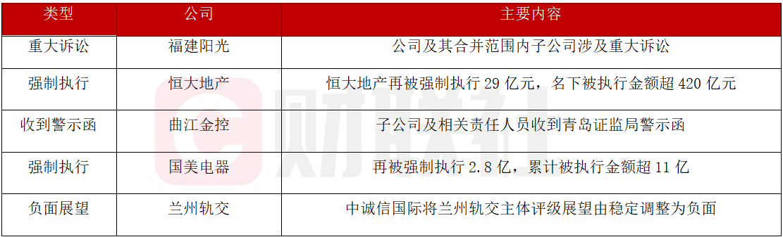 福建阳光集团公告称,“21福建阳光SCP001”、“21福建阳光SCP002”、“21福建阳光SCP003”、“21福建阳光SCP004”违约后,公司已通过处置资产、请求金融机构及政府支持等措施积极自救,受宏观经济周期、金融行业监管环境、子公司受房地产行业前期政策调控和销售仍未回暖、诉讼事项等多项因素的不利影响,公司仍面临流动性问题。公司仍在与持有人沟通展期事宜,争取获得持有人的理解。