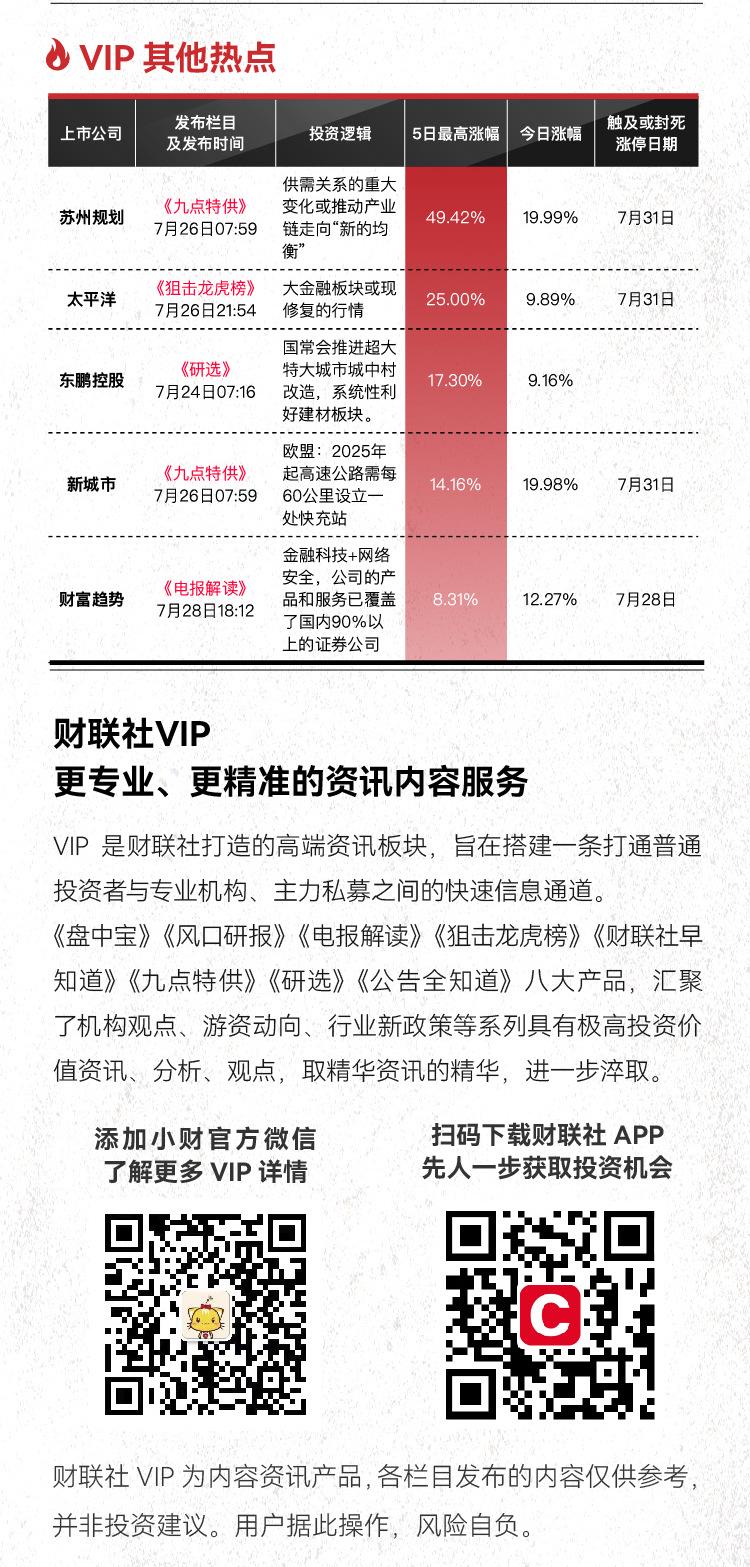 注:财联社VIP为内容资讯产品,并非投资建议。以下内容仅为资讯价值展示非对相关公司的推荐建议,非未来走势预测。投资有风险,入市需谨慎。