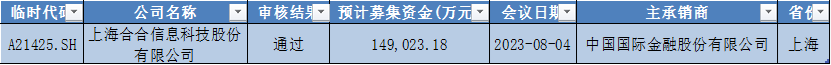如上图,本周只有1家上海合合信息上会并通过审核。