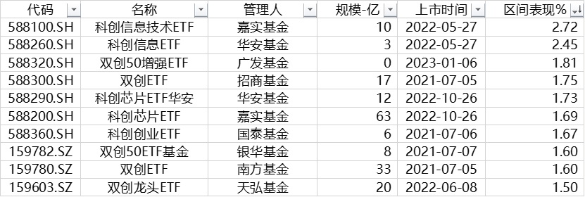 上表是本周市场表现按照降序排列的科创板ETF基金,本文选取前十名。本周科创板普涨,信息技术表现相对较好。