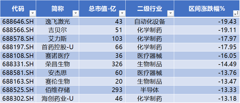 上表是本周跌幅榜前十公司,行业上医药公司占了8席。