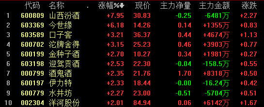 白酒板块今天无论是整体表现,还是板块内的个股表现,均未特别突出,但板块及个股均有持续性表现。山西汾酒暴涨8%,今世缘大涨6%,口子窖、沱牌舍得、金种子酒、迎驾贡酒、酒鬼酒等个股亦有不错表现。消息面上,贵州茅台发布一季度业绩预告,业绩持续增长,行业龙头业绩向好刺激了整个板块的个股走高。从之前的规律来看,白酒难有较大的爆发力,但能够有持续稳定的表现,属于细水长流型的板块。