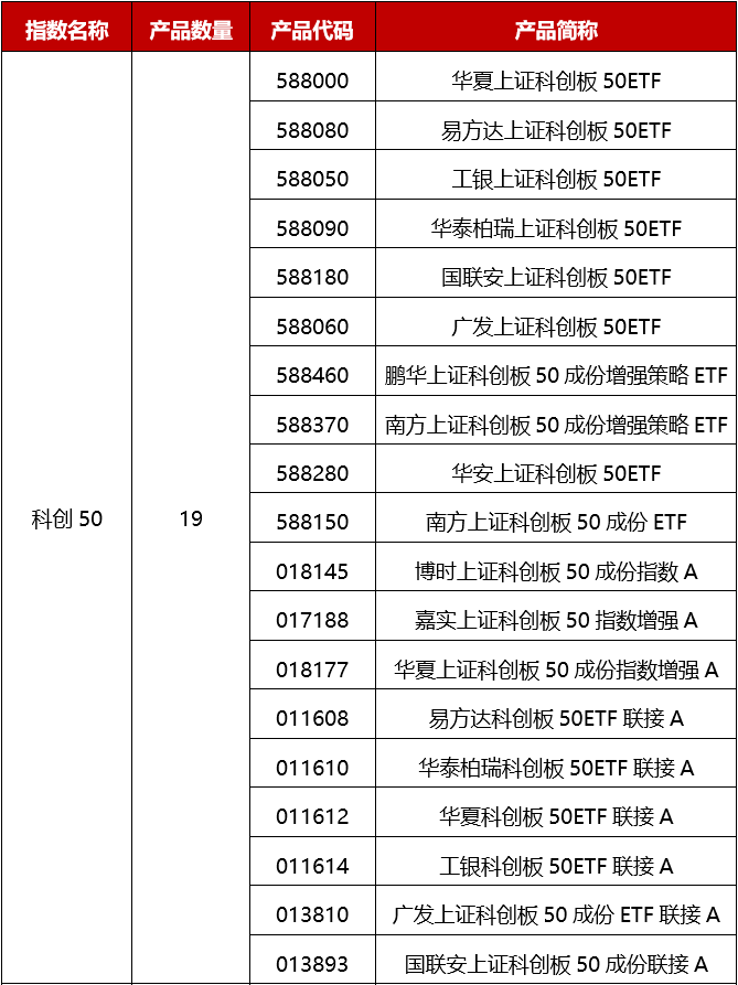 截至2023年7月底,科创50、科创芯片、科创信息和科创材料境内产品数量分别为19、4、2、2只,产品类型包括ETF、ETF联接基金、指数增强基金等,为投资者提供多种方式参与科创板指数投资。