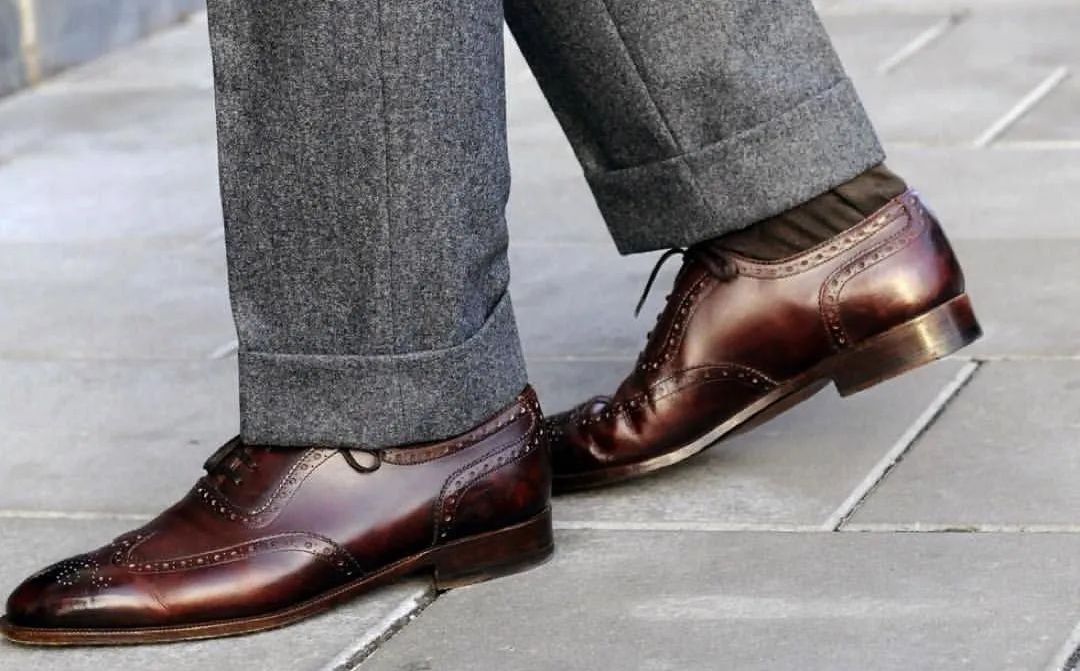 翻边常用在法兰绒裤子或者卡其裤之类休闲款式上,与其运动源流有一些关系。翻边可以提供垂坠感,保护裤脚,留出更多修改余地,有其功能性特点。