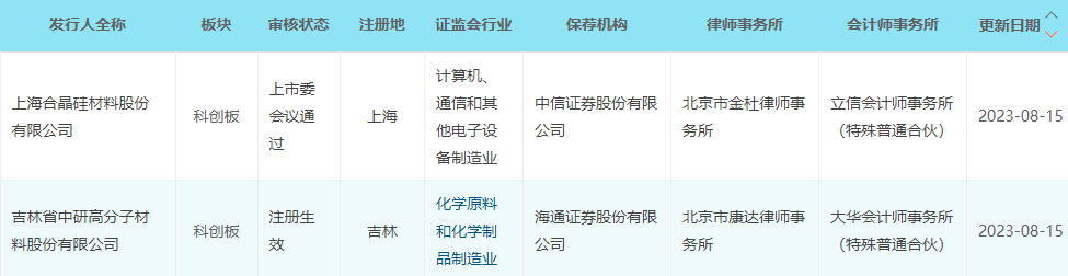 2家科创板拟上市公司发审状态更新 上海合晶过会