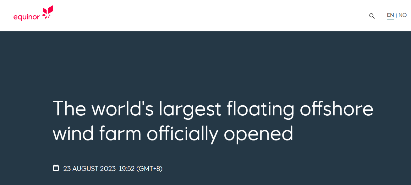 财联社8月24日讯(编辑 牛占林)当地时间周三(8月23日),挪威电力巨头Equinor宣布,世界上最大的海上浮动风电场Hywind Tampen全面投入运营,这标志着一个历时数年的重大的可再生能源项目取得了成功。