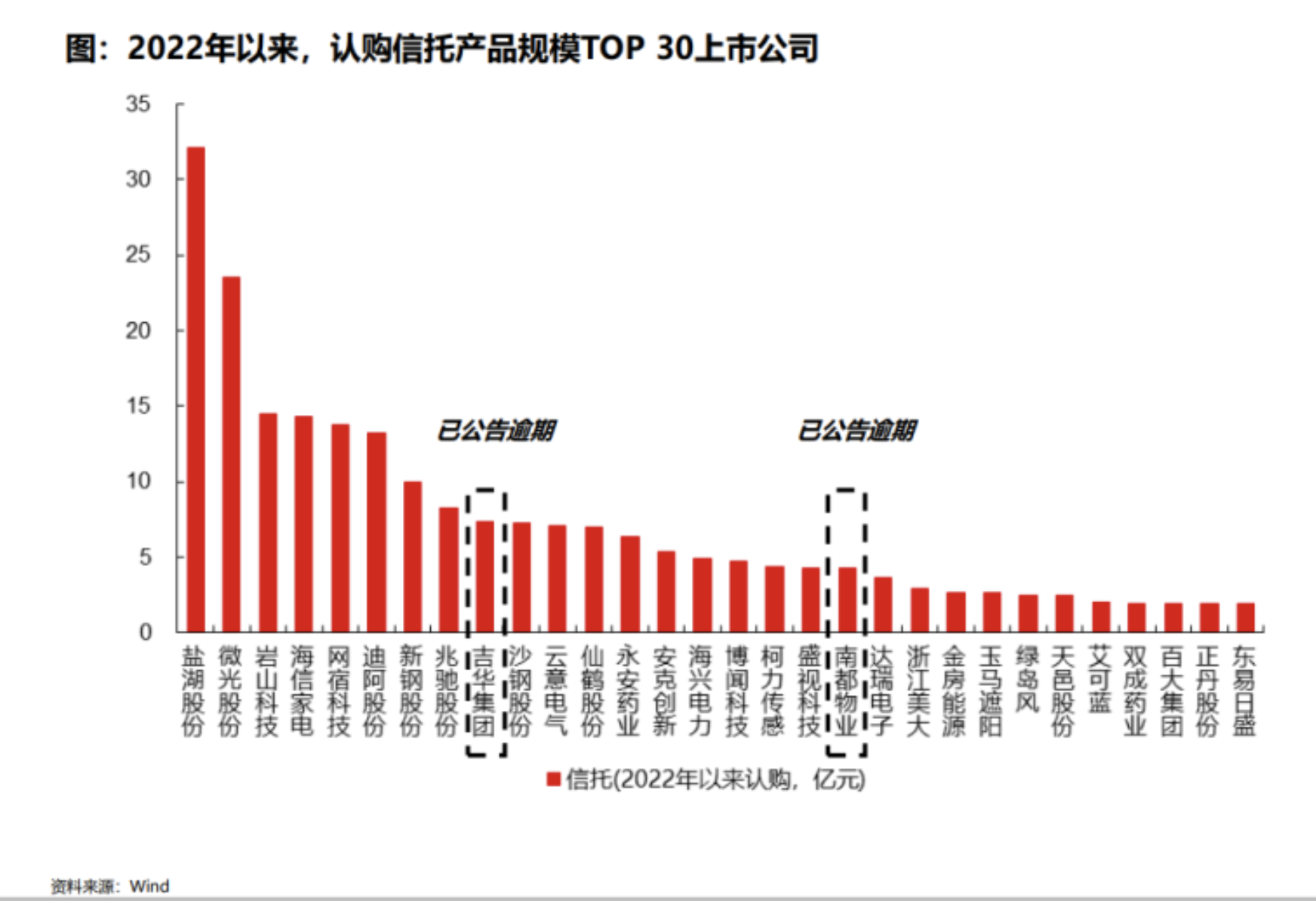 在公众号SEVEN调研纪要8月15日《上市公司持有信托情况整理-整体影响有限,个别需要关注》的统计中,自去年以来认购较多信托产品的上市公司中,位居首位的依旧是盐湖股份,其次是微光股份、岩山科技、海信家电、网宿科技等,累计认购金额均超过10亿元。