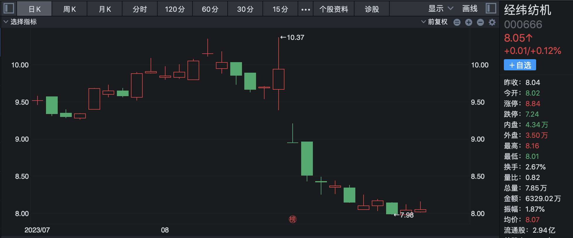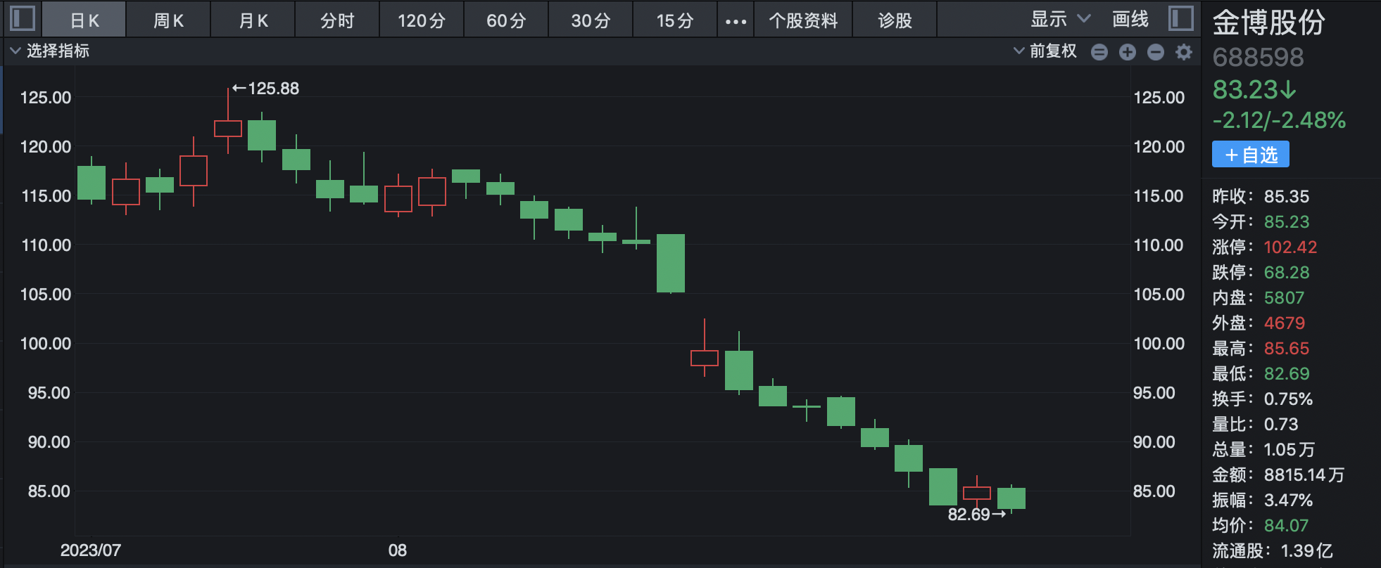 有业内分析人士认为,违约对于A股影响更偏情绪扰动,实质影响较小,对于非银金融、银行及少数涉及公司或有短期冲击。从二级市场反应来看,多家暴雷或有所涉及的公司已遭遇股价明显下跌。其中,金博股份自8月11日迄今,股价累计最大跌幅25.5%,总市值蒸发超39亿元。没有暴雷但作为中融信托第一大股东的经纬纺机自8月11日迄今,市值已蒸发超过16亿元。