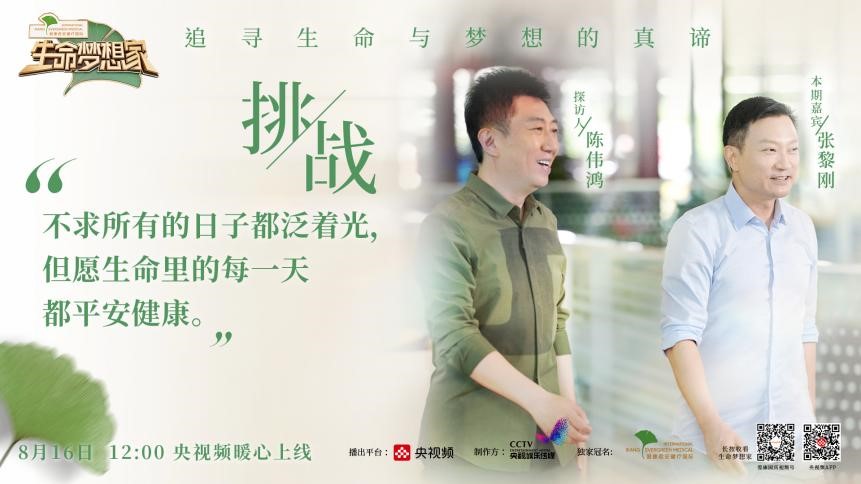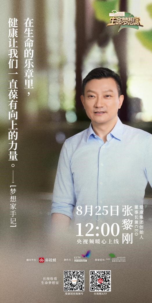 在由中央广播电视总台5G新媒体平台央视频与爱康集团旗下高端健康管理品牌—爱康君安联合打造的纪实访谈节目《生命梦想家》中,总台主持人陈伟鸿作为探访者与张黎刚展开了一场深度对话,走进他与健康同行、和梦想共舞的多元人生,共同探讨“生命梦想家”的真谛。