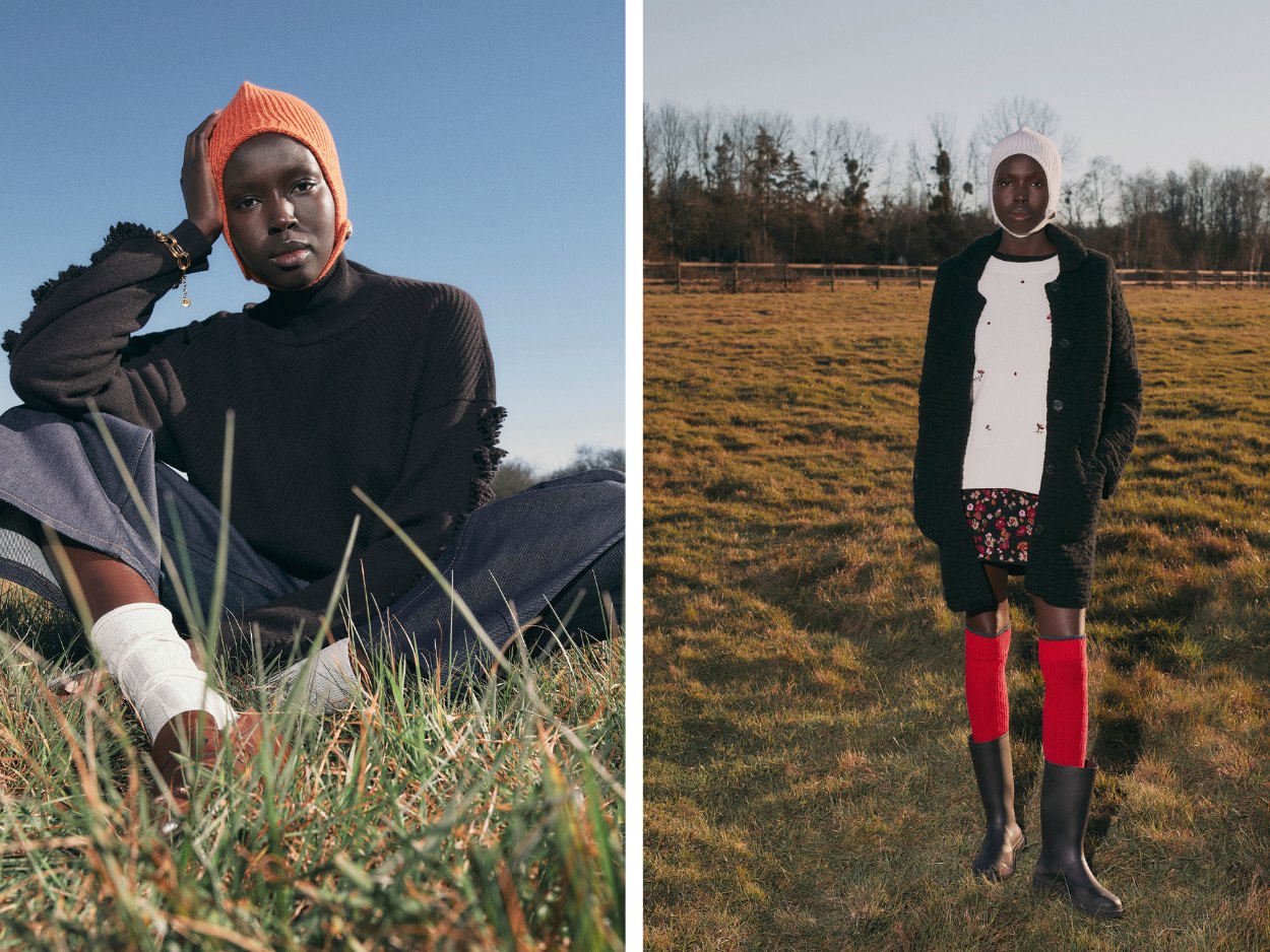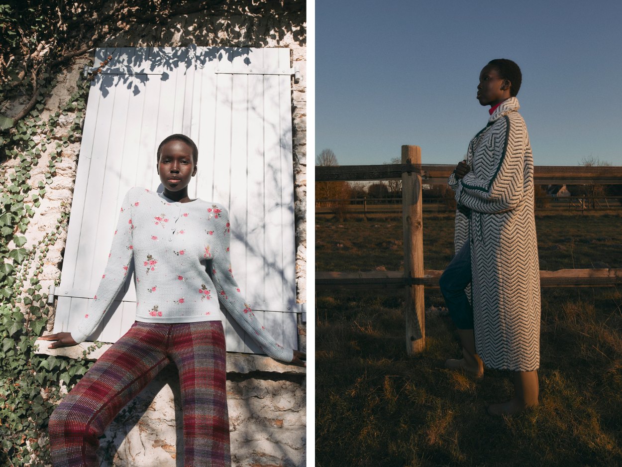 此外,本季配饰包括温暖的无檐冬帽、季节配色的围巾和手套,以及带有钮扣带的全新Five Needles“beguin”帽饰,玩转室内与户外。 玫瑰和花朵在帽子、手套与针织地毯拖鞋上灿然绽放。