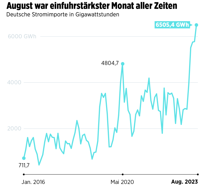 德国输电系统运营商Tennet的总经理Tim Meyerjürgens解释说,电力进口的增加并不一定意味着德国本身没有能力发电,但它们确实“说明了生产价格的问题”,也就是说,德国电力变得更加昂贵了。