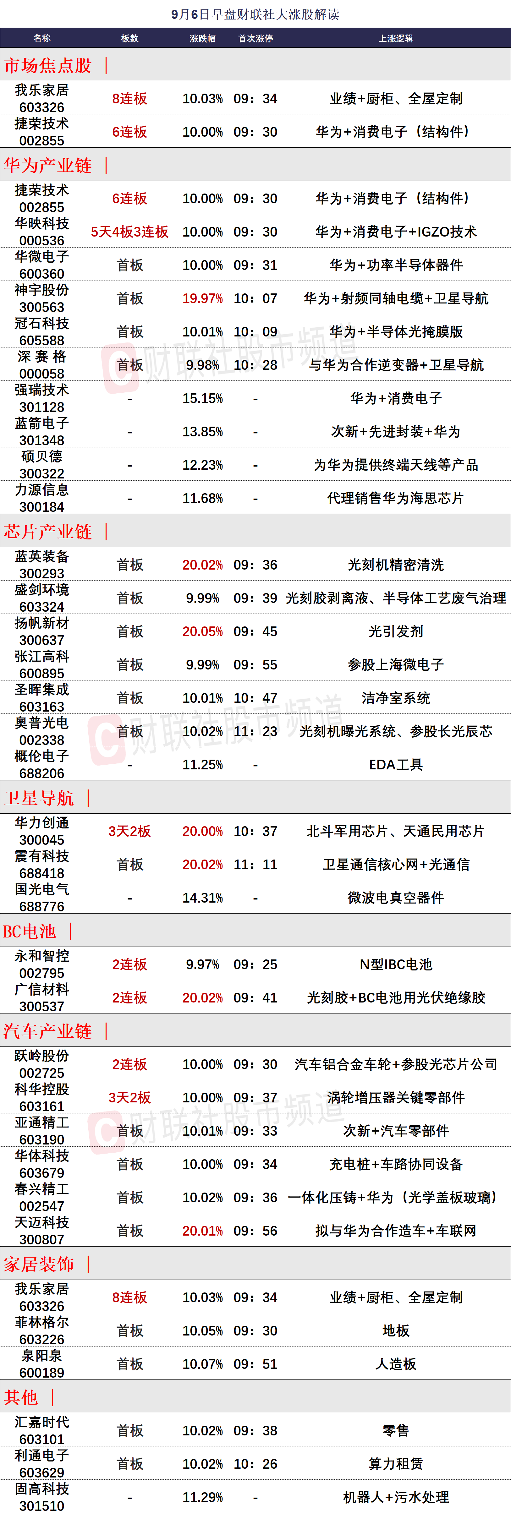 9月6日午间涨停分析