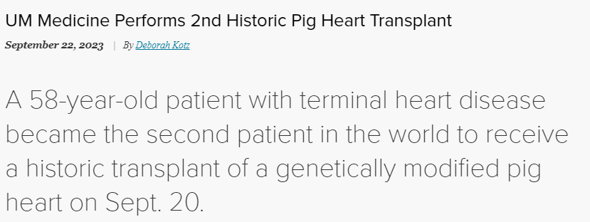 值得一提的是,上月同样由马里兰大学团队操刀、雷维维科尔提供猪肾的移植手术也获得了初步成功。