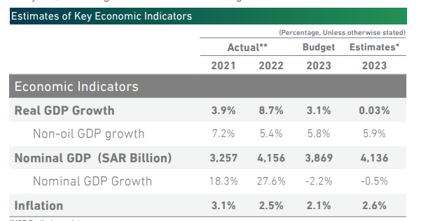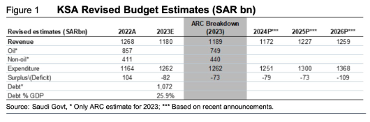 “对于2023年,我们重申石油收入可能达到7490亿沙特里亚尔,这主要是由于沙特阿美最近的PLD上涨。尽管如此,我们将非石油收入的预期提高到4400亿里亚尔(之前估计4210亿里亚尔)。在非石油GDP增长的牵引下,2023年上半年非石油收入已经超过2022年同期。”