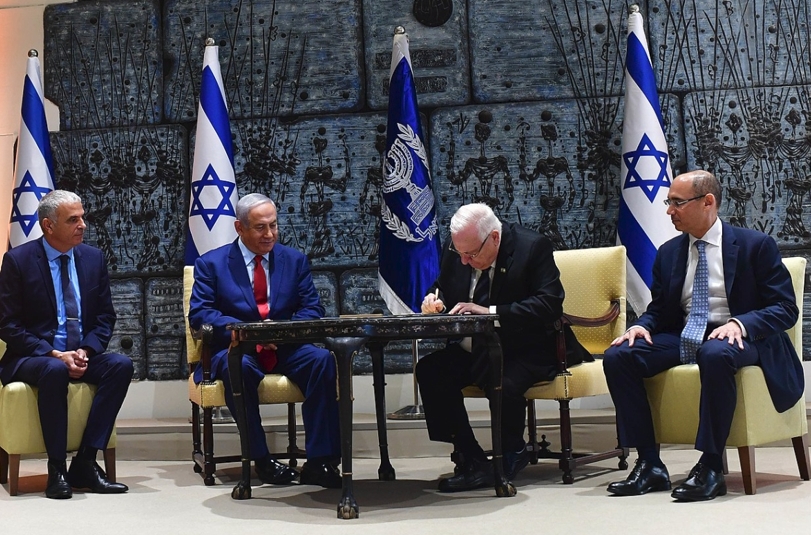 (2018年前以色列总统里夫林签署Yaron(右一)的任命状,来源:以色列政府)