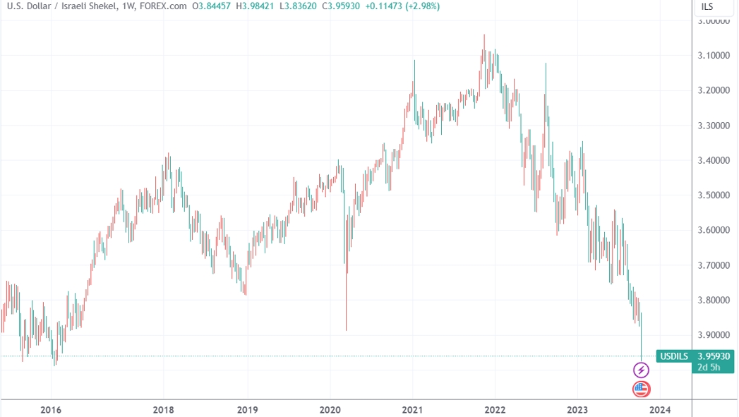由于以色列近年来内部的种种问题,在本周之前新谢克尔已经是今年全球表现比较差的货币之一。与美元相比,年初至今的贬值幅度达到10%。