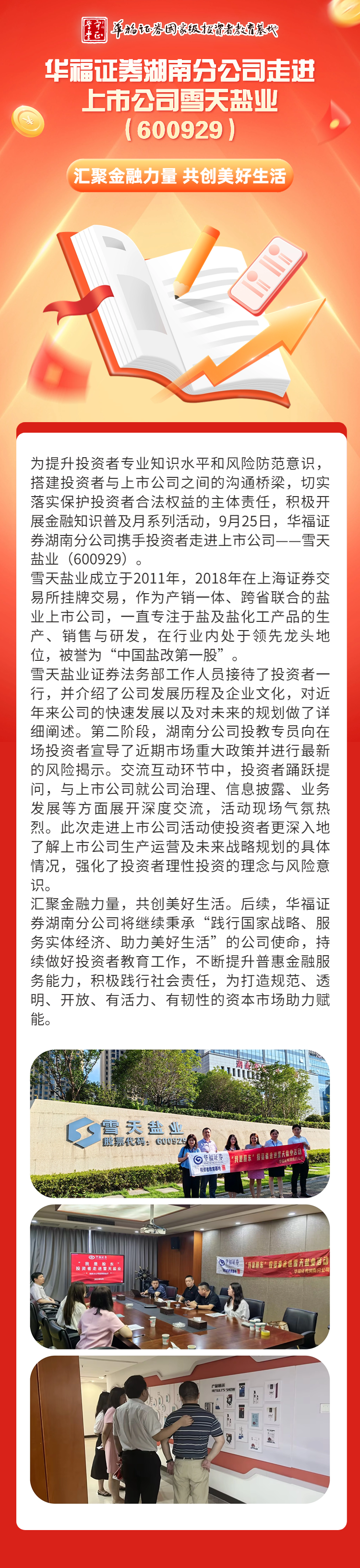 金融消费者权益保护教育宣传月 | 华福证券湖南分公司走进上市公司雪天盐业(600929)