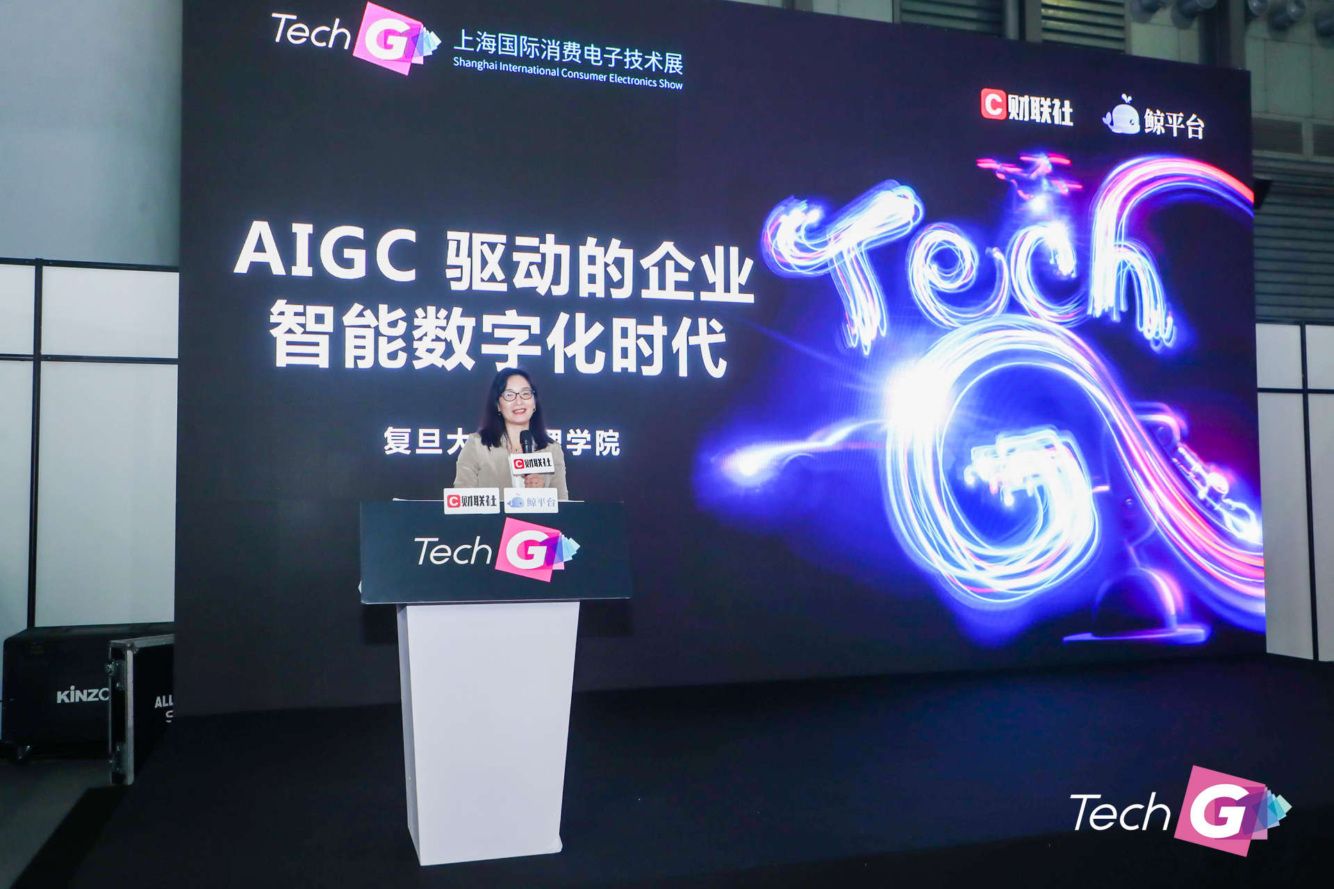 在论坛现场,复旦大学管理学院信息管理与商业智能系教授、博士生导师卢向华作为特邀演讲嘉宾,在现场进行“AIGC 与企业智能数字化时代”主题分享。