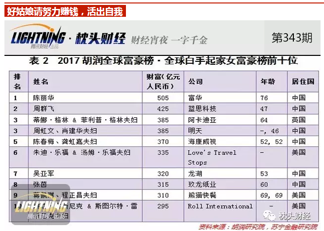 还有一个值得注意的现象是,女性拥有的财富已经越来越多,其中表现最优秀的当属中国女性。数据显示,全球富豪榜中的女性数量占总榜的15%。在88位白手起家女富豪中,中国诞生了56位白手起家十亿美金女富豪,位列第一,占全球64%。美国以15位排名第二,英国第三。在全球前十位的白手起家女富豪中,中国占了6位。