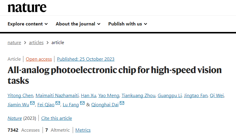 相关成果以“高速视觉任务中的纯模拟光电芯片”(All-analog photo-electronic chip for high-speed vision tasks)为题,以长文(article)形式发表在《自然》(Nature)期刊上。该课题得到科技部2030“新一代人工智能”重大项目、国家自然科学基金委基础科学中心项目等的支持。