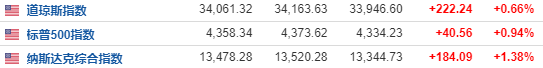 截至收盘,标普500指数涨0.94%,报4,358.34点,自今年6月份以来首次连涨五天;纳斯达克综合指数涨1.38%,报13,478.28点,连涨第六天;道琼斯指数涨0.66%,报34,061.32点。