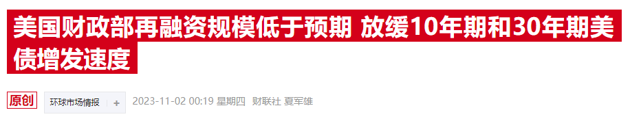上周在美联储决议的同一天,美国财政部公布报告称其新一季再融资债券发行规模为1120亿美元,虽比8月宣布的1030亿美元有所增加,但不到华尔街债券交易商预期的1140亿美元。