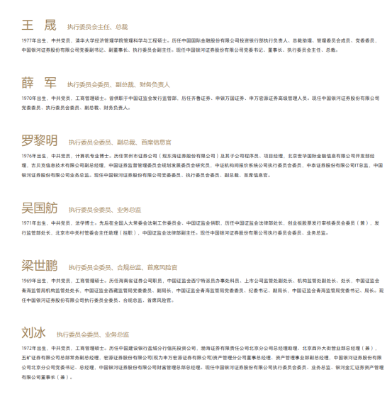 图为银河证券经营管理层名单