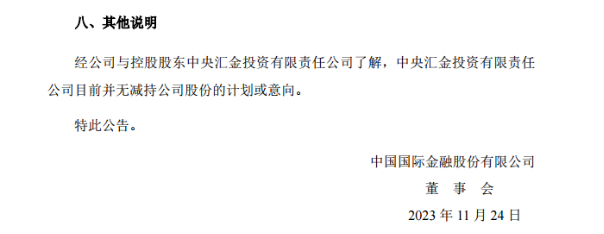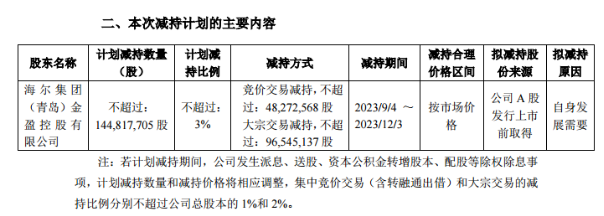 此前,中金公司股东海尔金盈曾经在两轮减持中金公司后,开启第三轮减持。根据中金公司公告,海尔金盈计划减持合计不超过1.45亿股中金公司A股股份,其中竞价交易减持为不超过4827万股,大宗交易减持不超过9654万股,总占比不超过中金总股本的3%,目前,中金公司仍处于该轮减持期间。