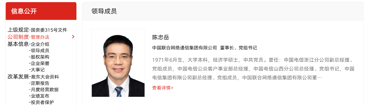《科创板日报》记者今日下午注意到,中国联通官网,已经更新了公司最新的领导成员信息,陈忠岳位列领导栏之首。