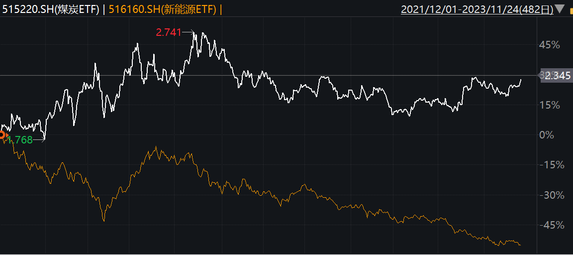 2021年12月以来,煤炭ETF与新能源ETF走势对比