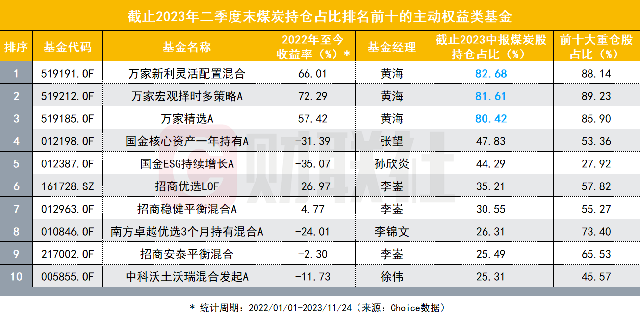 于是乎,重仓煤炭股的基金得以脱颖而出。