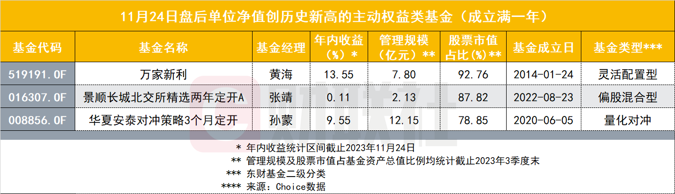 不过,创历史新高的并不止北交所主题基金。截止上周末,成立满一年的主动权益类基金中,单位净值创历史新高的还有两只,其中之一是个基金业界熟悉的名字——黄海,2022年主动权益类基金年度业绩“冠军”。