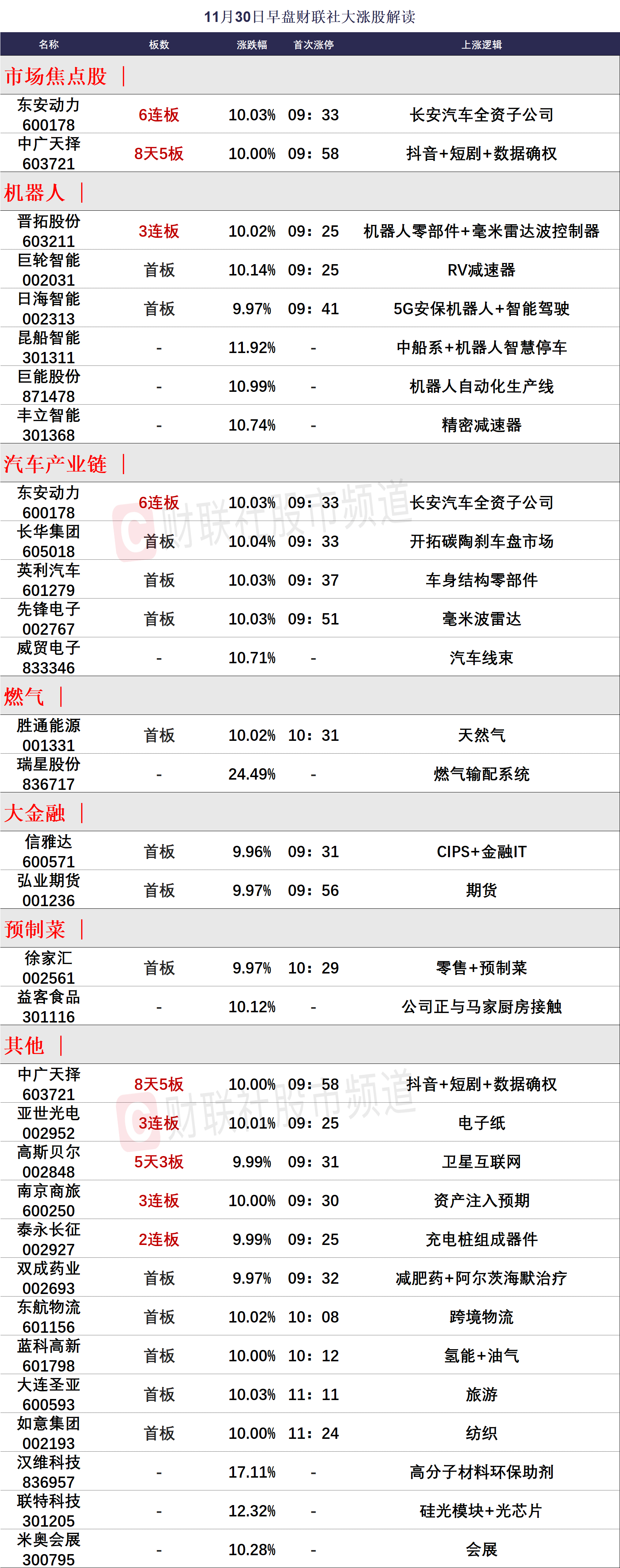 11月30日午间涨停分析