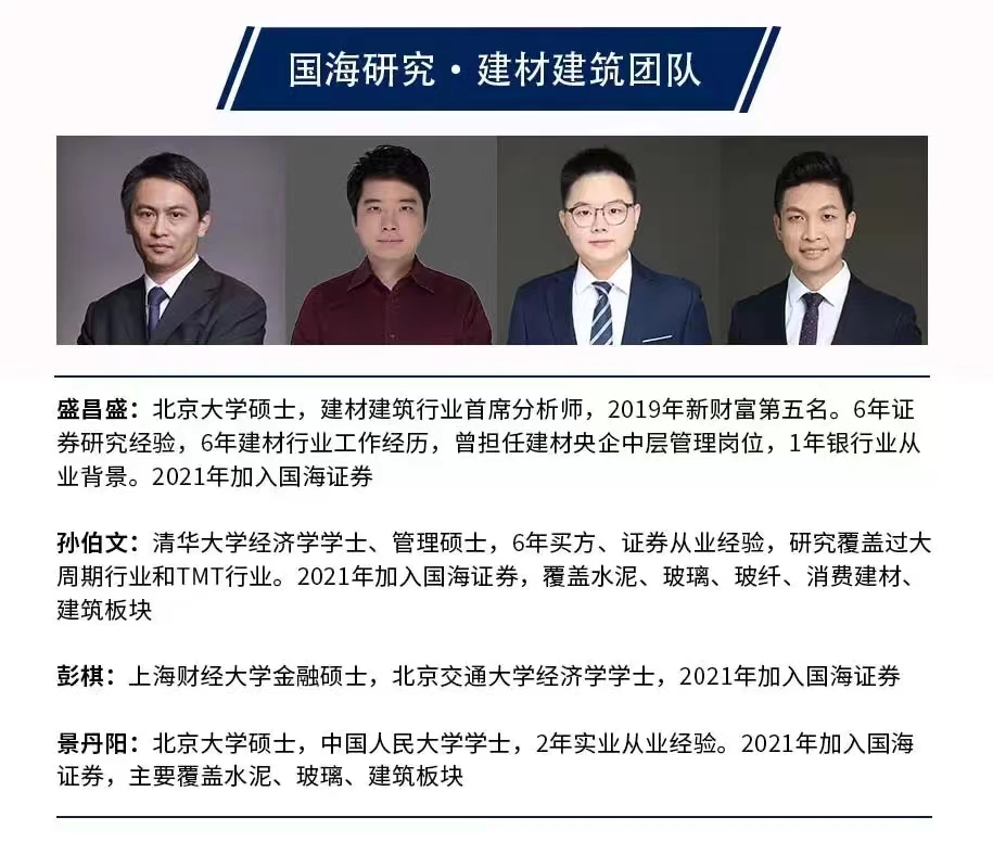 上述四人均为原国海证券建材建筑团队成员,相关国海证券研报中对此有所介绍。