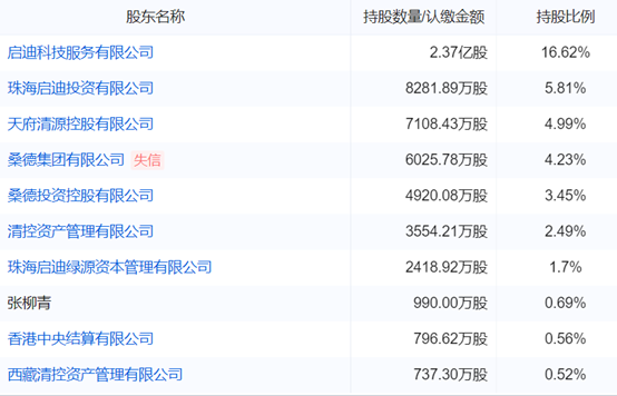 据企业预警通显示,启迪环境当前处于无实控人的状态,前十大股东中持股最多的启迪科技服务有限公司持股16.62%。