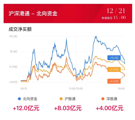 北向资金全天净买入12.03亿,其中沪股通净买入8.03亿元,深股通净买入4亿元。