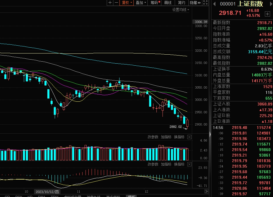 今早沪指直接低开跌破2900点关口,白酒为首的大消费以及光伏为首的新能源赛道双双启动,快速拉升股指翻红。尽管传媒、AI等强势板块盘中再度补跌拖累股指二次探底,但光伏、CPO等机构重仓板块强势拉升,带动股指展开绝地反击。午后昆仑万维等AIGC概念冲高的同时,光伏、储能等新能源赛道持续走强,沪指强势收复2900点,创业板指收涨超1%。沪深两市今日成交额7324亿,较上个交易日放量688亿。截至收盘,沪指涨0.57%,深成指涨1.08%,创业板指涨1.65%。