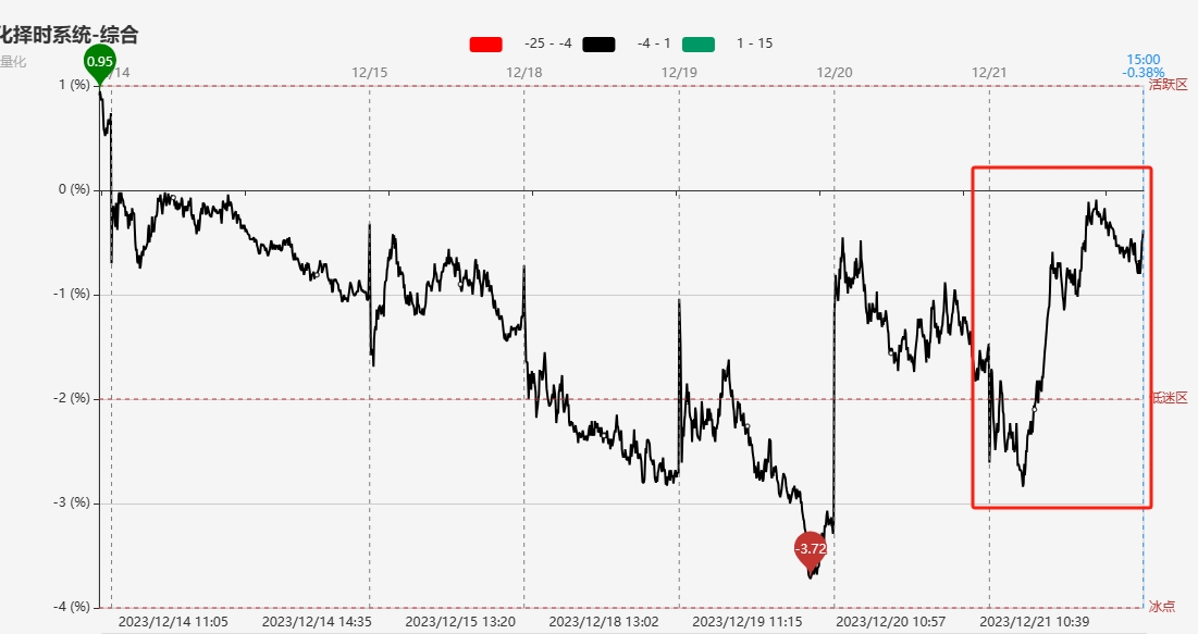 指标显示,今早短线情绪低开后一度惯性下探低迷区下方,但随着股指快速反弹,带动两市上涨个股的迅速增加,同时部分高位连板股实现晋级,带动短线情绪快速回升。午后短线情绪在日内高点附近维持震荡,最终以0轴附近报收。