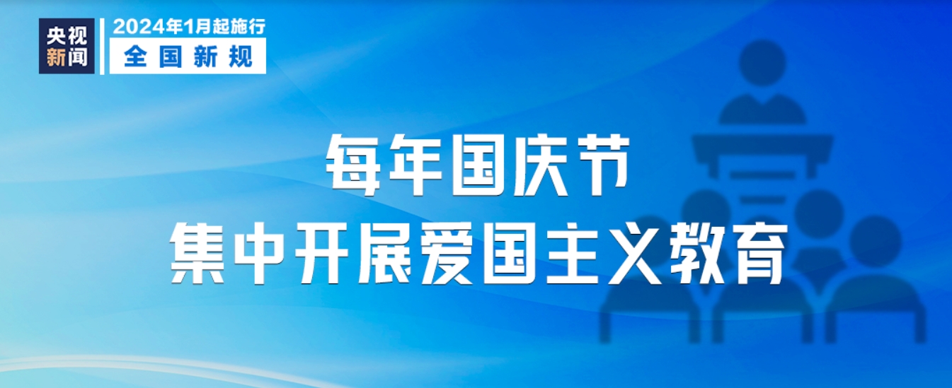 《中华人民共和国爱国主义教育法》自2024年1月1日起施行,其中规定在每年10月1日中华人民共和国国庆日,国家和社会各方面举行多种形式的庆祝活动,集中开展爱国主义教育等。
