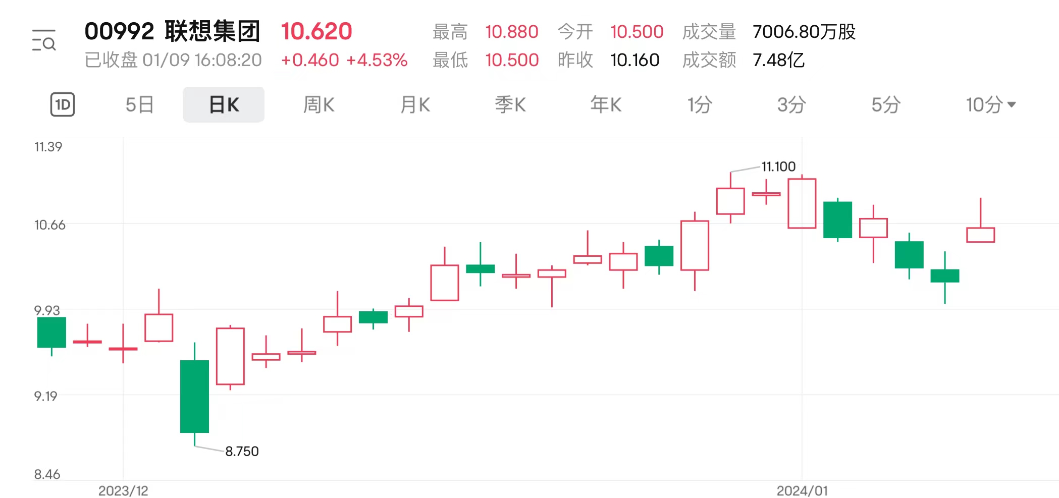 今日,苹果概念、半导体、锂电池等与消费电子相关的板块均出现走强,联想集团(00992.HK)今日涨超4%。
