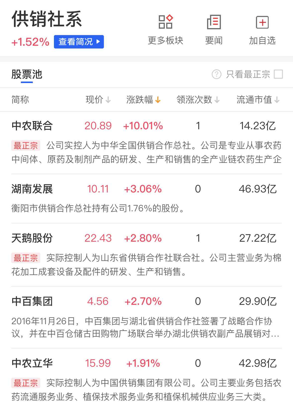 供销社板块反复活跃,其中中农联合、ST大集涨停,湖南发展、天鹅股份跟涨。消息面上,中华全国供销合作总社表示,力争到2025年,全系统通过从上到下建设农业社会化服务体系,土地托管面积达到1.5亿亩,各环节农业社会化服务规模达到3亿亩次,服务带动小农户5000万户以上。