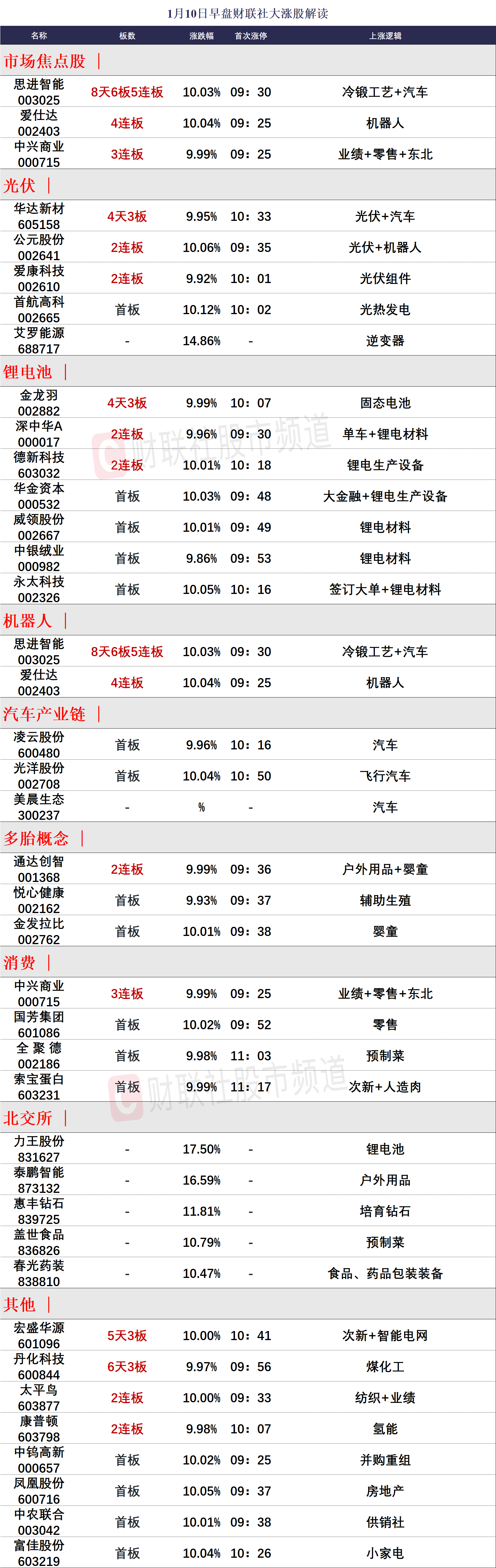 个股来看,今日两市共31只个股涨停(不包括ST及未开板新股),两市封板率为71%。早盘连板股数10家,其中思进智能5连板,爱仕达4连板,中兴商业3连板,深中华A、通达创智、爱康科技、公元股份、德新科技、康普顿、太平鸟2连板。