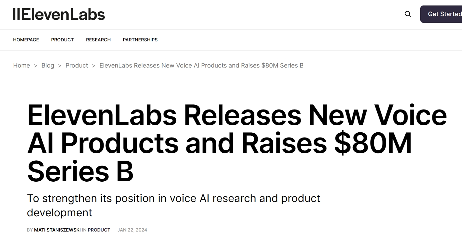 ElevenLabs周一(1月22日)宣布,该公司在B轮融资中获得了8000万美元的融资,这笔资金由美国私人风险投资公司Andreessen Horowitz、企业家Nat Friedman和Daniel Gross领投,红杉资本等公司也参与了融资。
