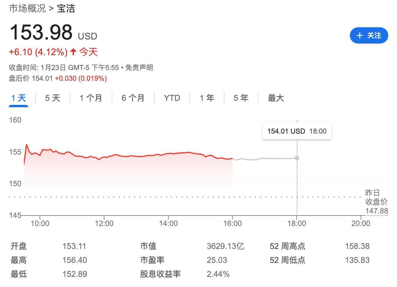 尽管宝洁季度销售额低于预期,但由于定价上涨提振了利润率,其季度利润超出了华尔街预期,该股周二收盘上涨逾4%。