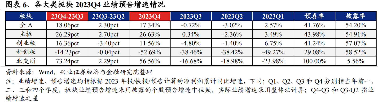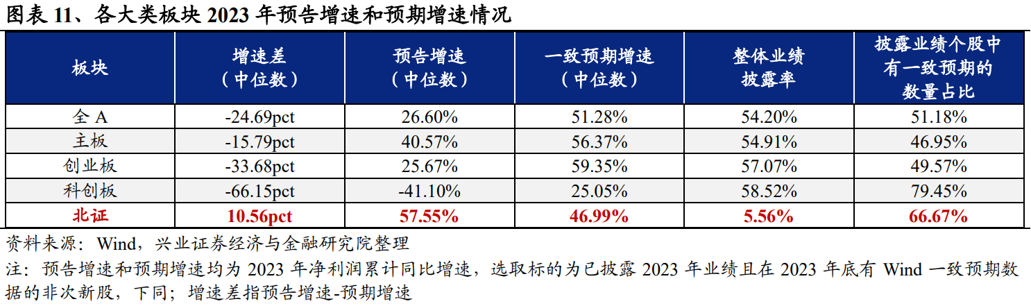 根据已发布2023年报业绩预告/快报/年报披露业绩,我们对全A各行业整体业绩进行分析: