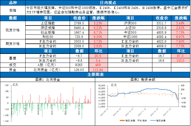 今日市场大幅反弹,中证500和中证1000领涨,IC2406、IC2409和IM2406、IM2409涨停。
