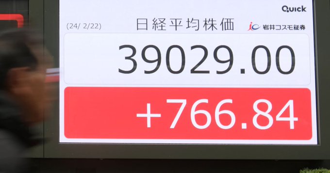 在当地时间中午12:32,当行情屏幕上日经225指数的报价前所未有地触及39029点时,野村证券东京交易大厅的约20名交易员一同起立致敬,他们中的一些人相互拥抱、欢呼,另一些人则由衷地以经久不息的掌声回应……