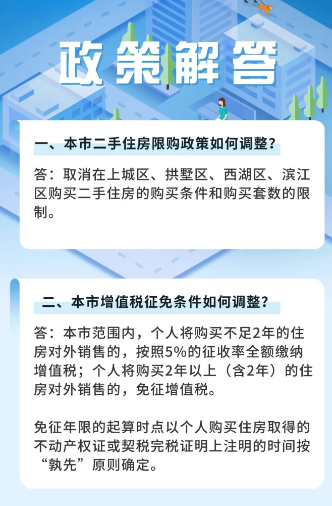 杭州楼市新政:二手房不再限购 卖房增值税征免年限统一调整为2年