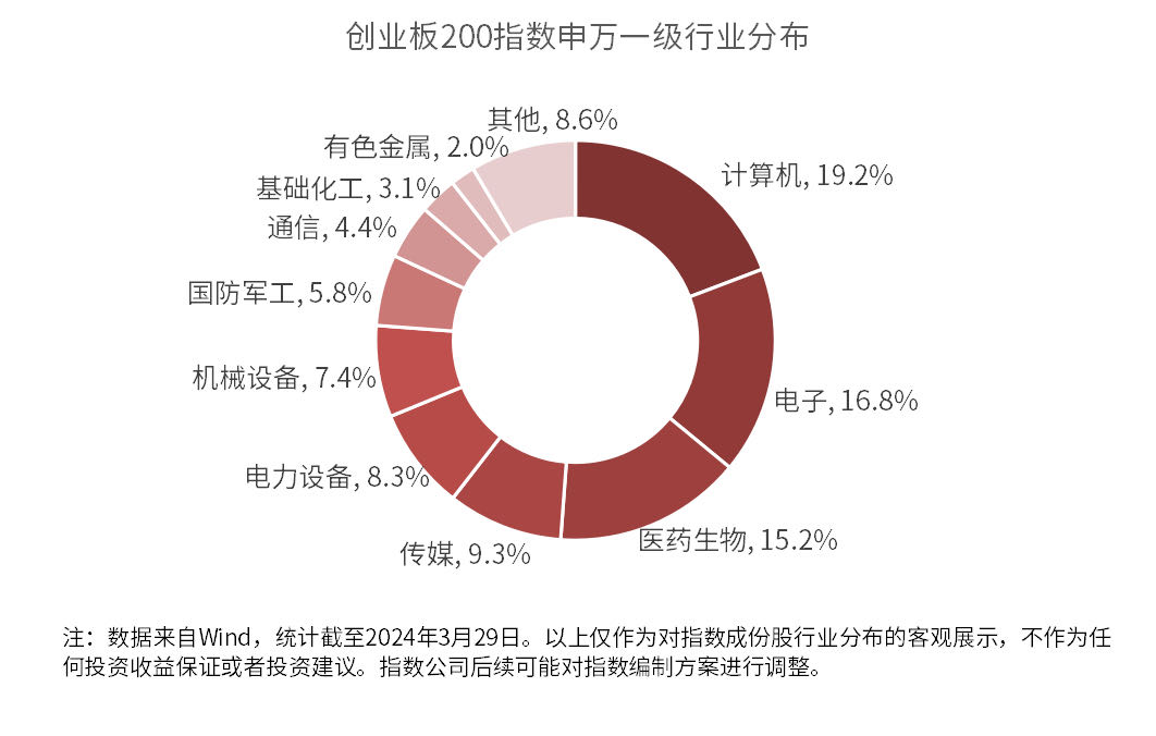 创业板200ETF易方达(159572)等产品跟踪的创业板200指数,由创业板中市值规模中等、流动性较好的200只股票组成,反映创业板市场中盘代表性公司的整体表现,可助力投资者布局创业板优质中小风格资产,分享新兴产业主题机会。